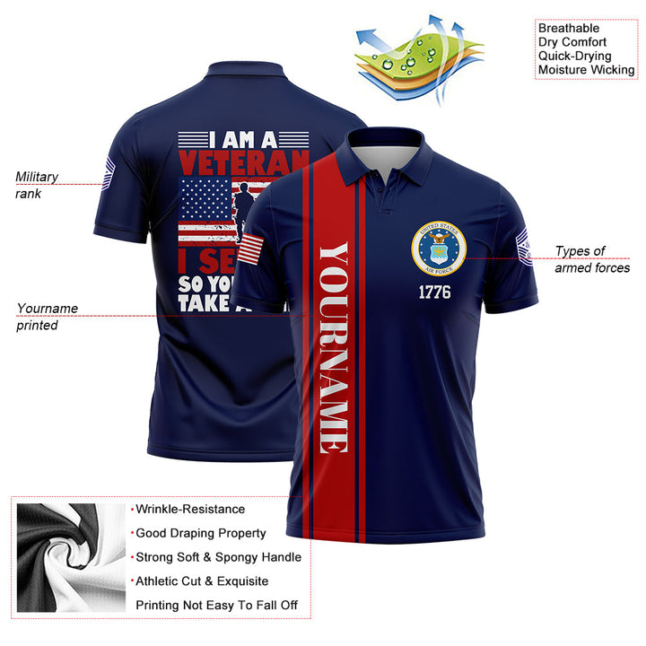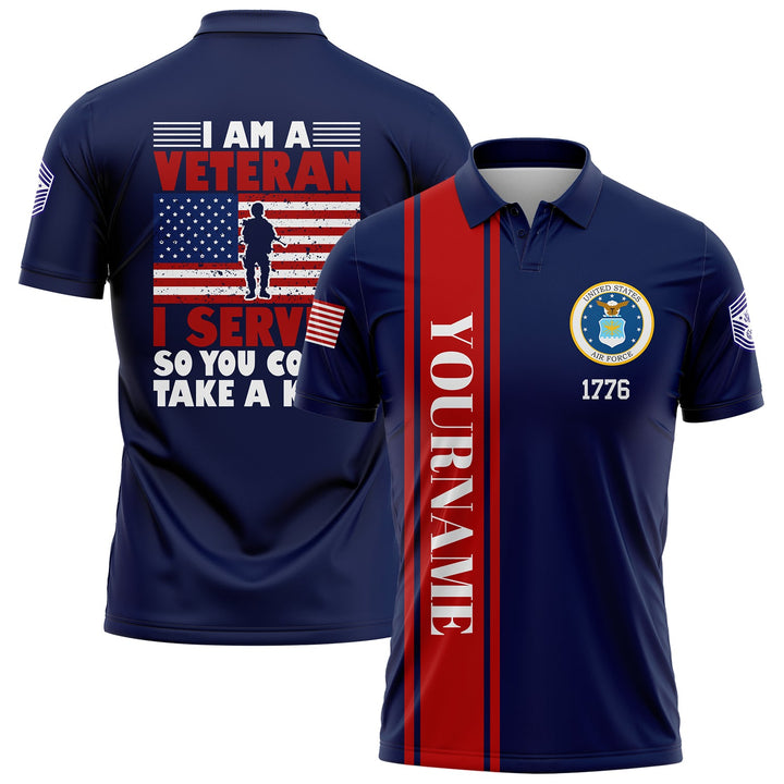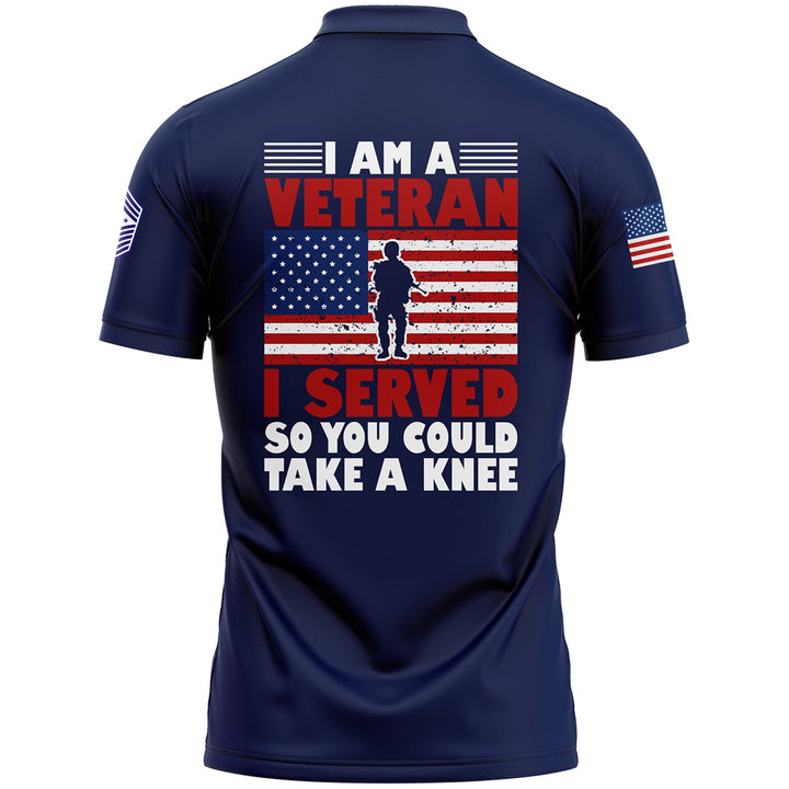 Custom Navy I'M A Veteran I Served So You Could Take A Knee 1776 Flag Military Rank Name Veterans Day Golf Polo Shirt