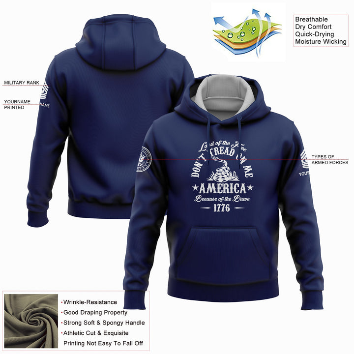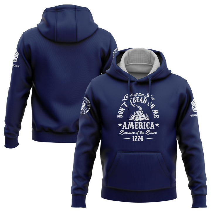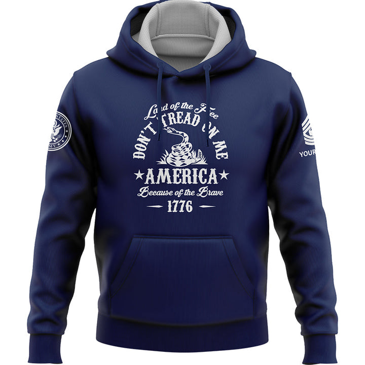 Custom Navy Land OF The Free Don't Tread On Me America Because Of The Brave 1776 Military Rank Veteran Name Hoodie