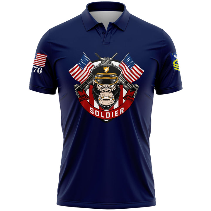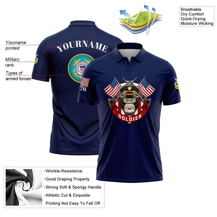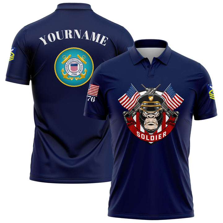 Custom Navy Orangutan Soldier 1776 American Flag U.S Coast Guard Military Rank Name Golf Polo Shirt