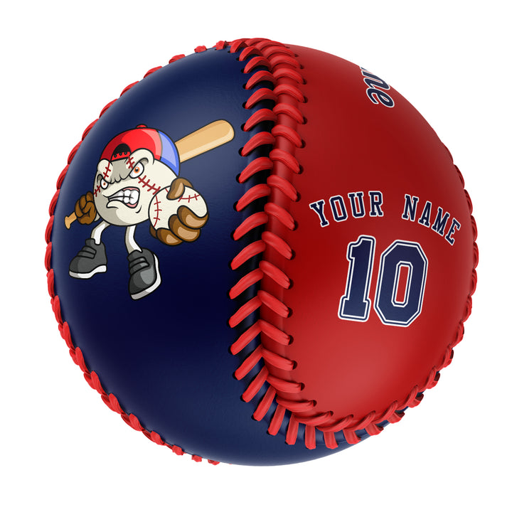 Custom Navy Red Half Leather Navy Authentic Baseballs
