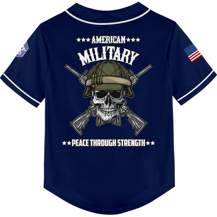 Custom Navy Skull Peace Through Strength 1776 U.S Air Force Military Rank Name Baseball Jersey