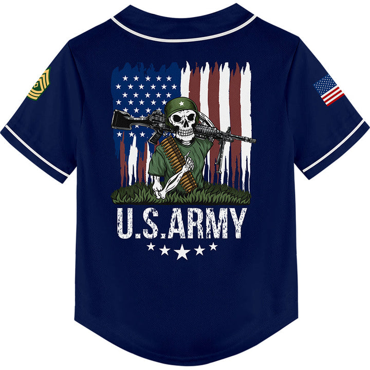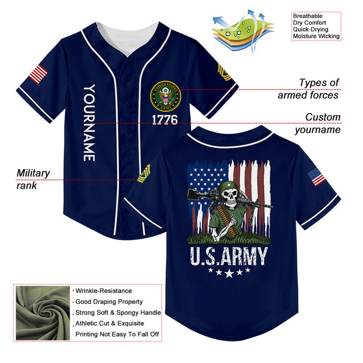 Custom Navy Skull Soldier 1776 American Flag U.S Army Military Rank Name Baseball Jersey