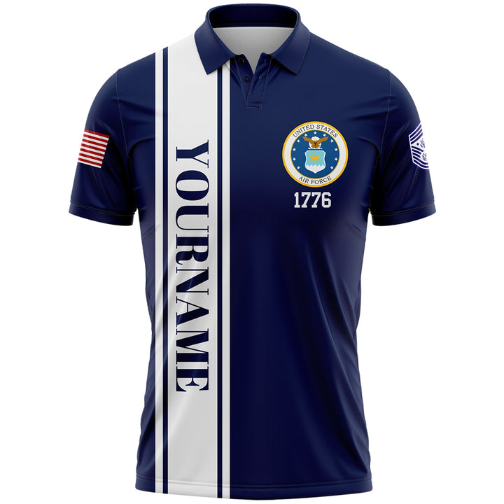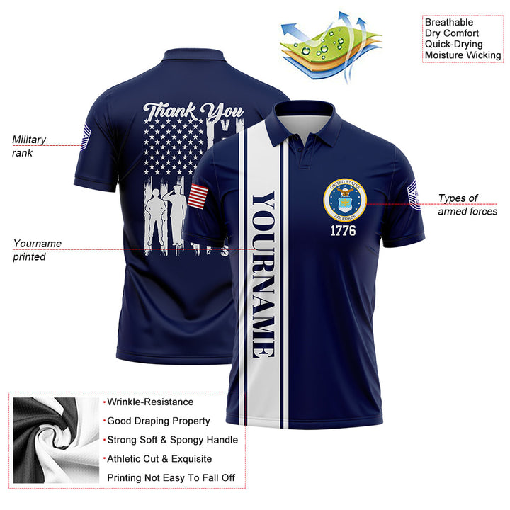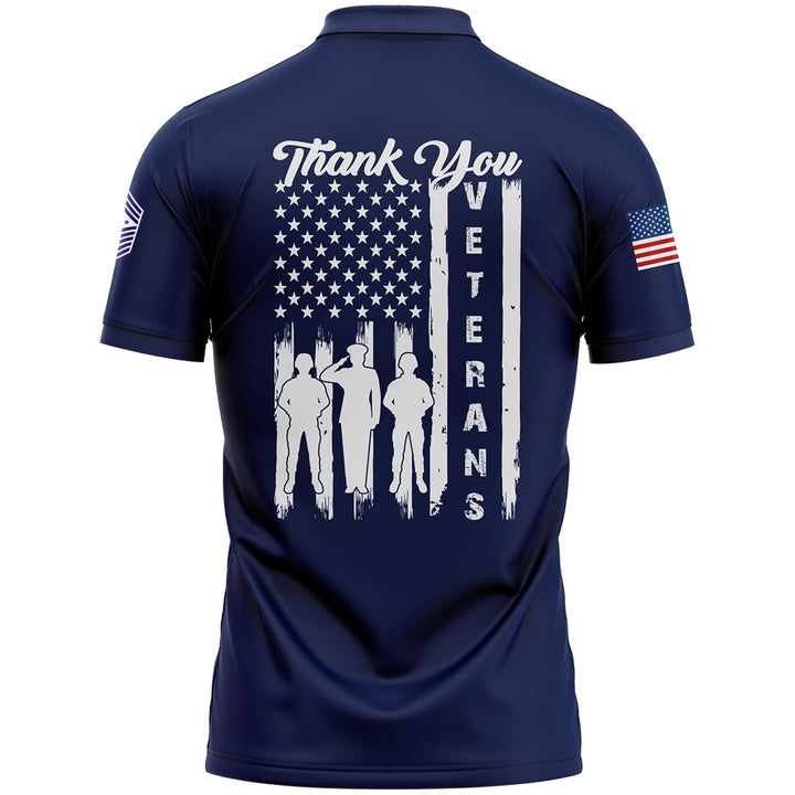 Custom Navy Thank You Veterans 1776 Flag U.S Air Force Military Rank Name Veterans Day Golf Polo Shirt | Father's Day Gifts