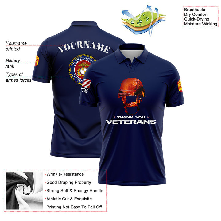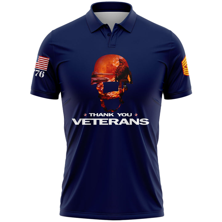 Custom Navy Thank You Veterans 1776 U.S Marine Corps Military Rank Name Golf Polo Shirt
