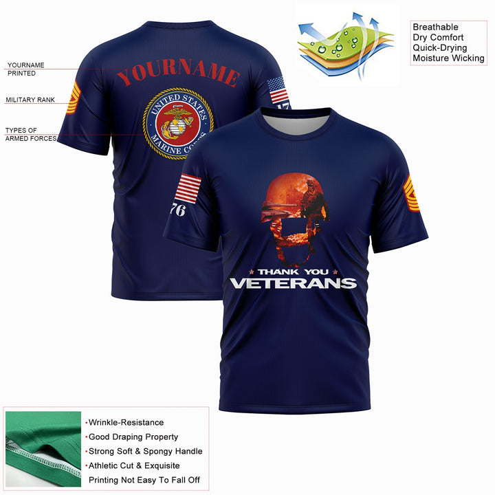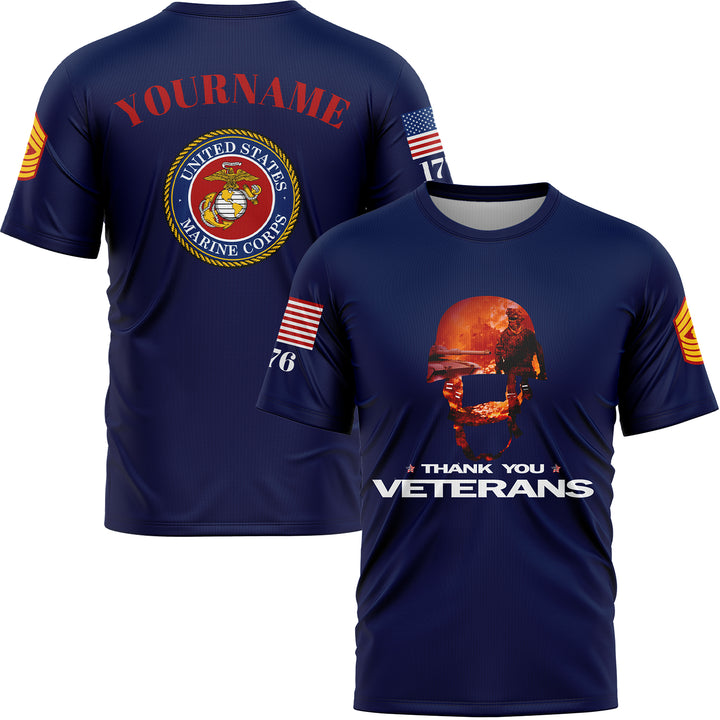 Custom Navy Thank You Veterans 1776 U.S Marine Corps Military Rank Name T-Shirt