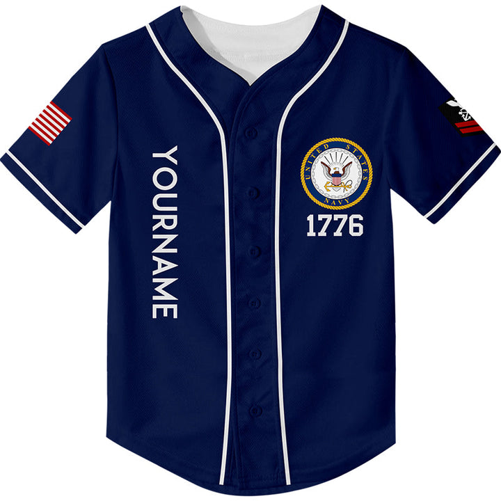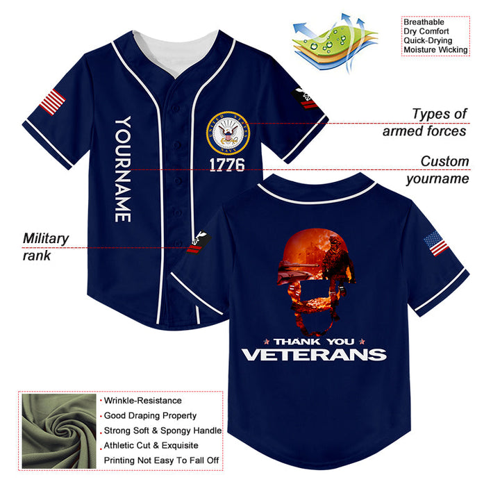 Custom Navy Thank You Veterans 1776 U.S Navy Military Rank Name Baseball Jersey