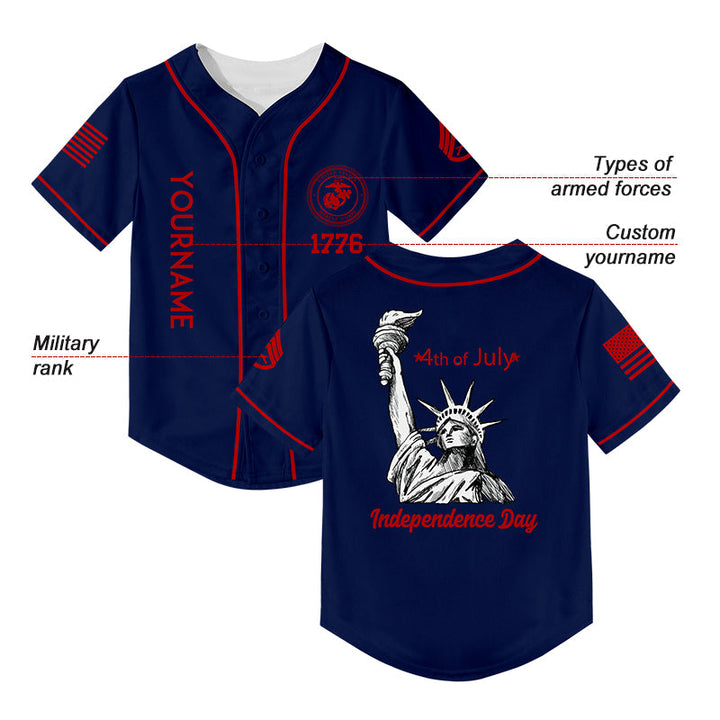 Custom Navy The Statue of Liberty 4th Of July Military Rank Name Independence Day Baseball Jersey