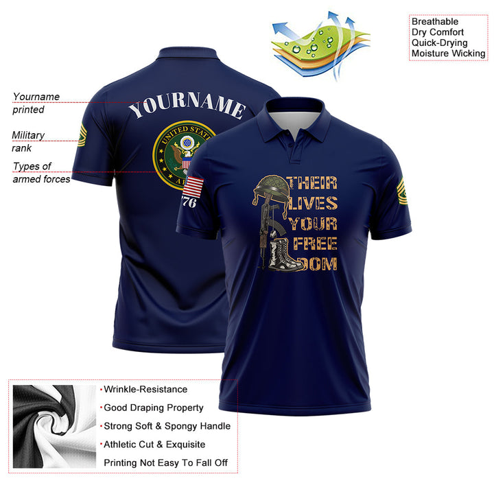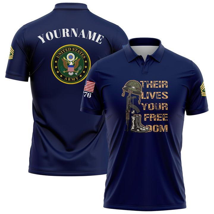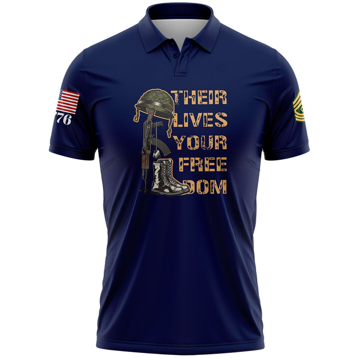 Custom Navy Their Lives Your Freedom 1776 U.S Marine Corps Military Rank Name Memorial Day Golf Polo Shirt