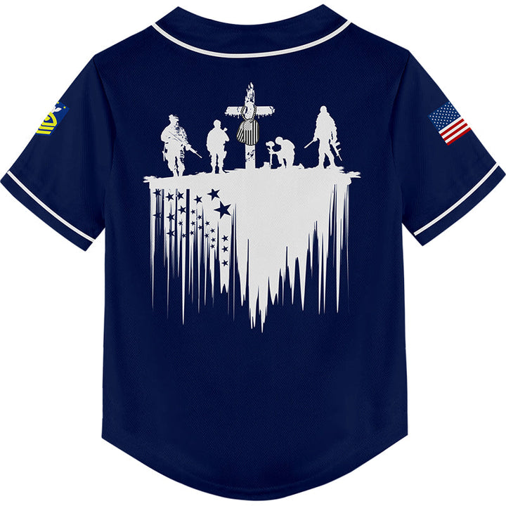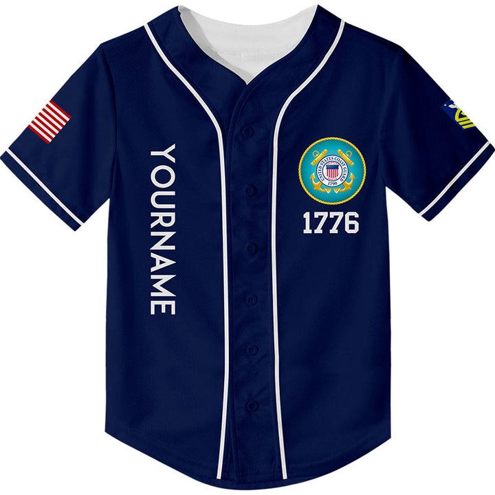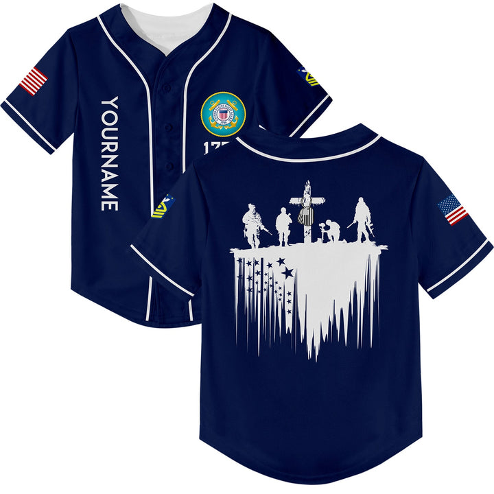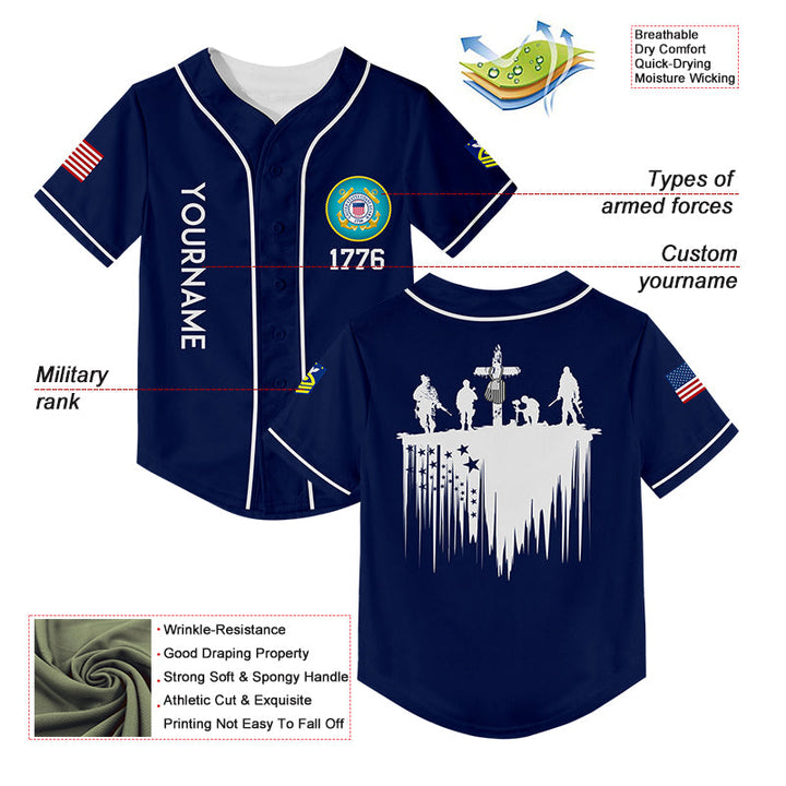 Custom Navy Tombstone Dog tag 1776 American Flag U.S Coast Guard Military Rank Name Memorial Day Baseball Jersey