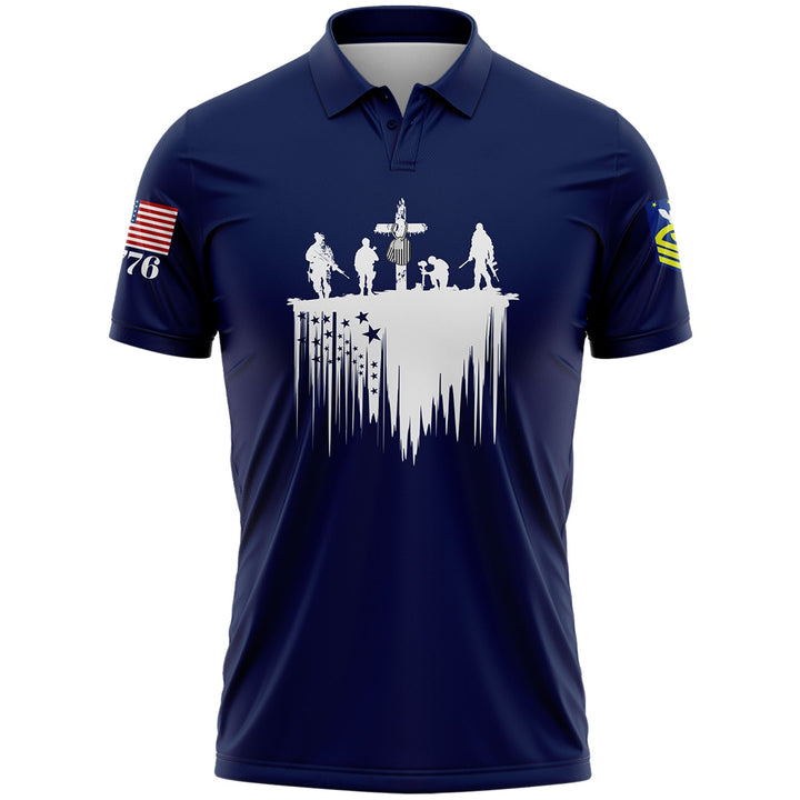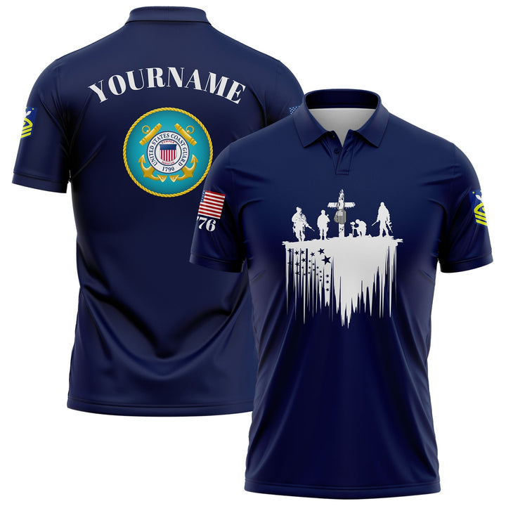 Custom Navy Tombstone Dog tag 1776 American Flag U.S Coast Guard Military Rank Name Memorial Day Golf Polo Shirt