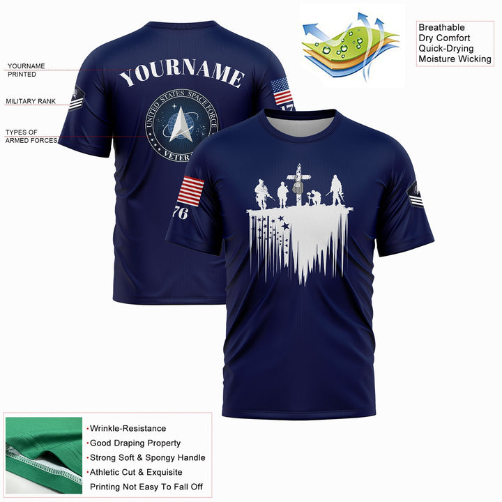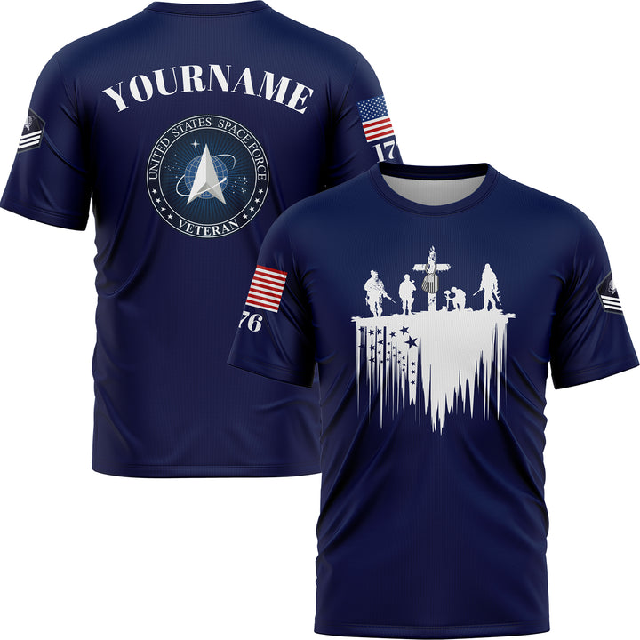 Custom Navy Tombstone Dog tag 1776 American Flag U.S Space Force Military Rank Name Memorial Day T-Shirt