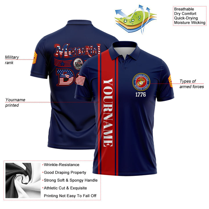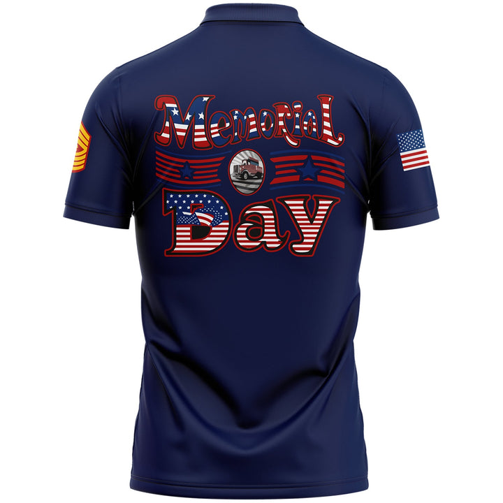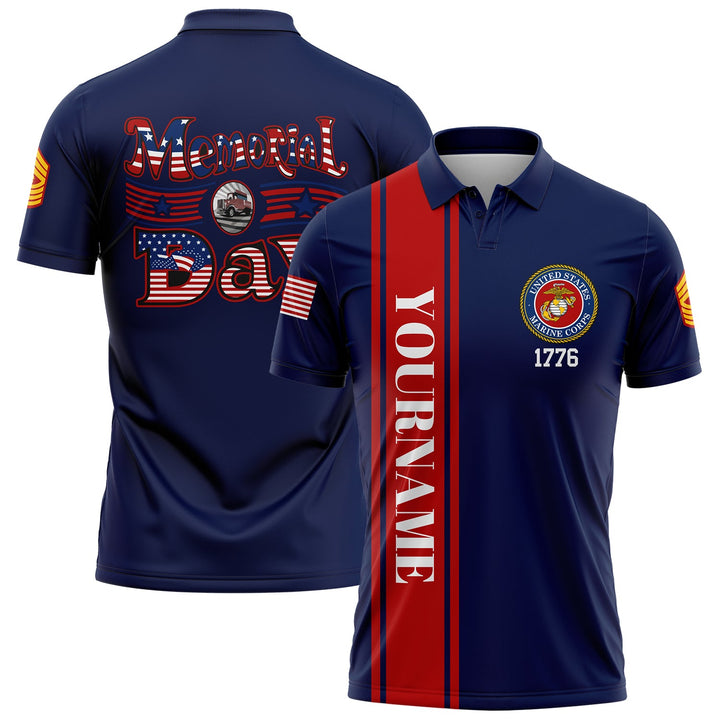 Custom Navy Truck 1776 American Flag U.S Marine Corps Military Rank Name Memorial Day Golf Polo Shirt