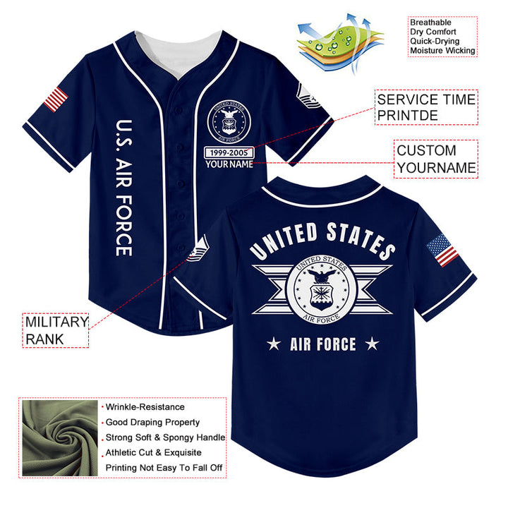 Custom Navy U.S Air Force Military Rank Veteran Name Baseball Jersey