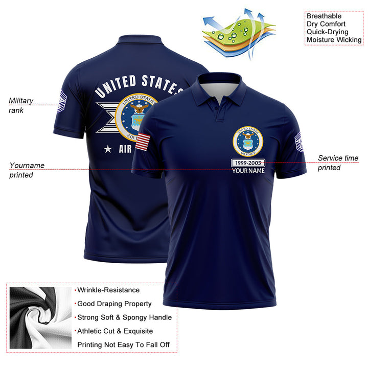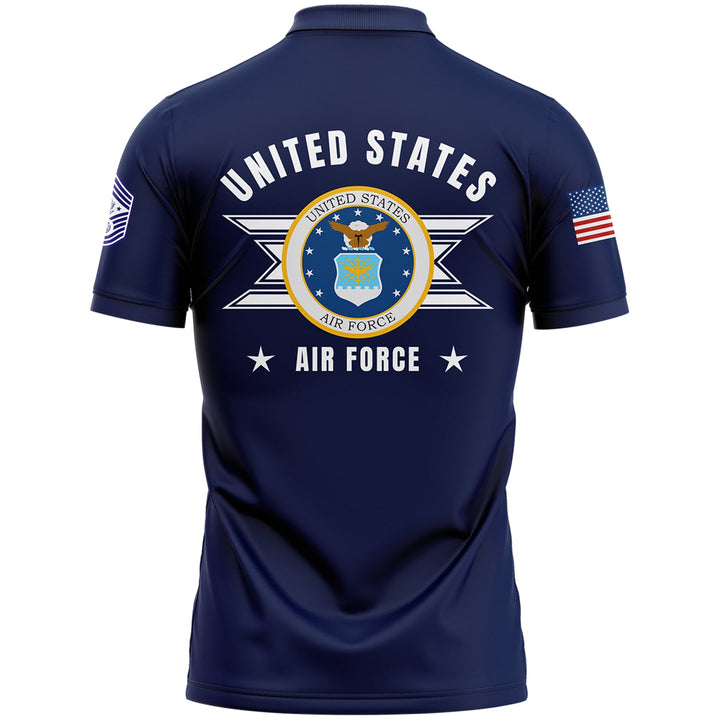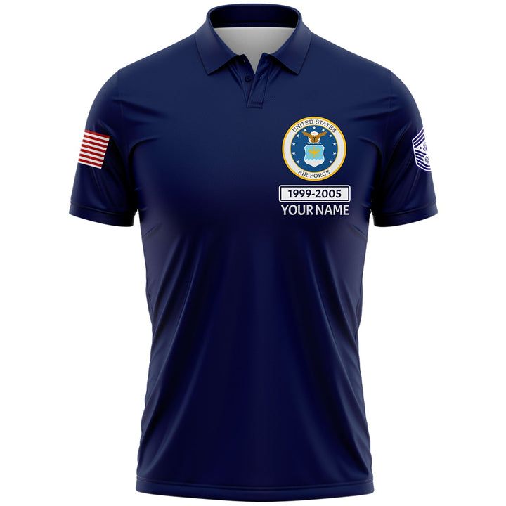 Custom Navy U.S Air Force Military Rank Veteran Name Golf Polo Shirt