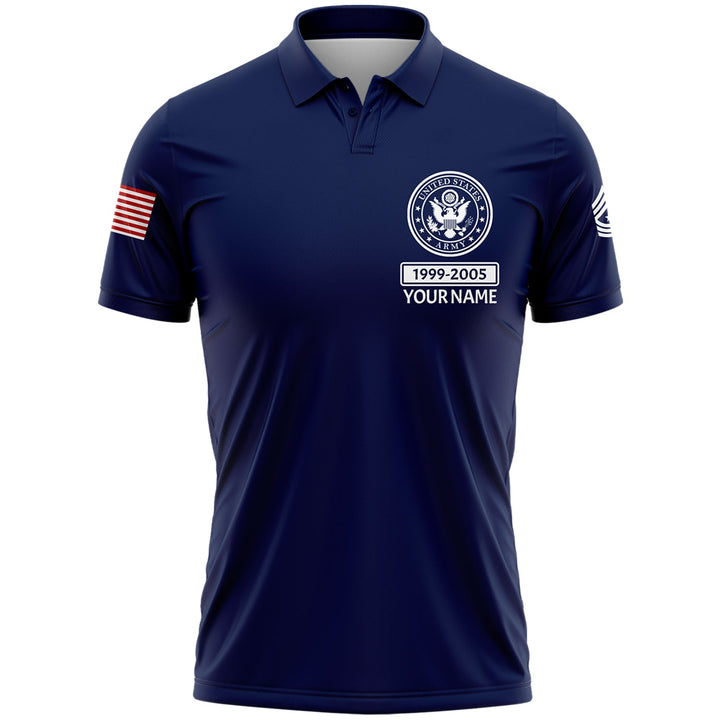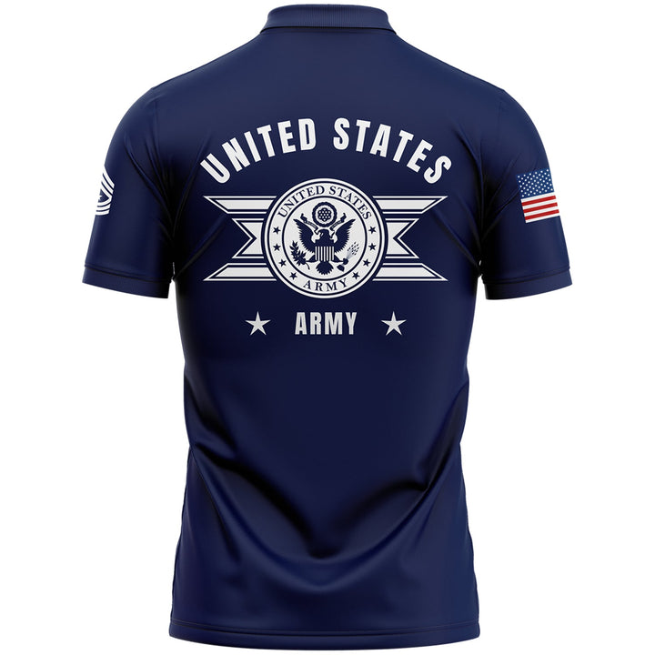 Custom Navy U.S Army Military Rank Veteran Name Golf Polo Shirt