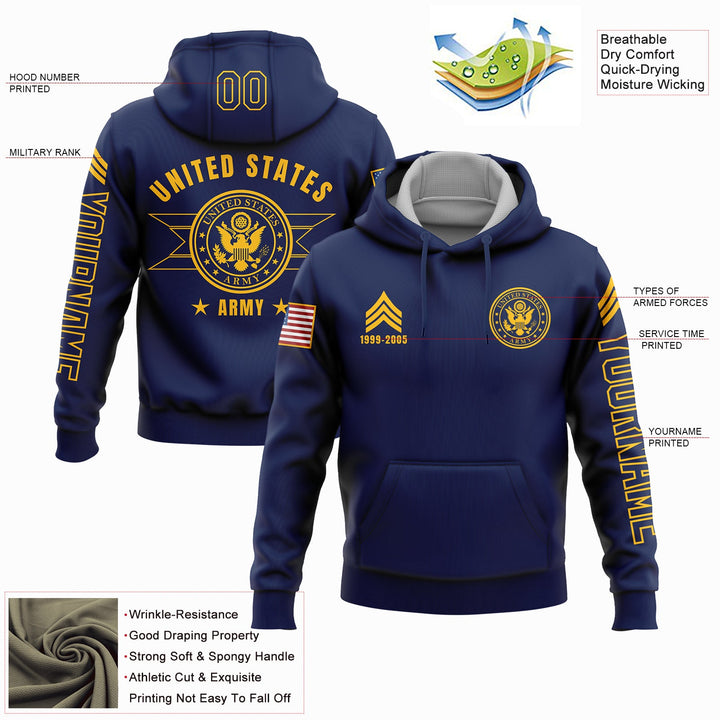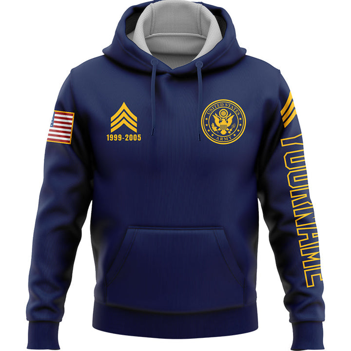 Custom Navy U.S Army Military Veteran Name Number Hoodie