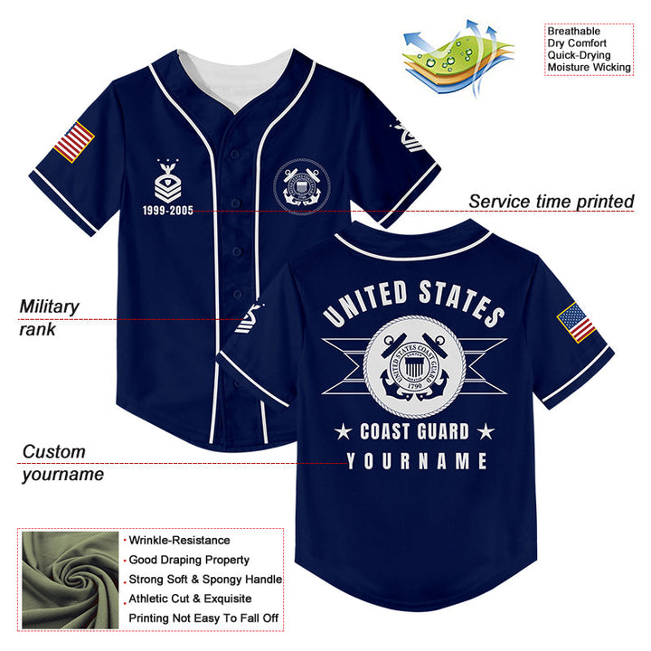 Custom Navy U.S Coast Guard Military Rank Veteran Name Baseball Jersey