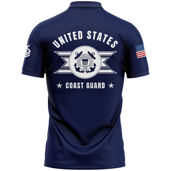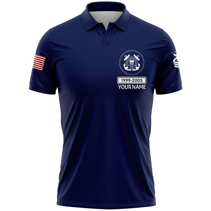 Custom Navy U.S Coast Guard Military Rank Veteran Name Golf Polo Shirt