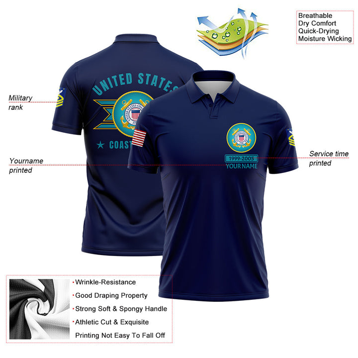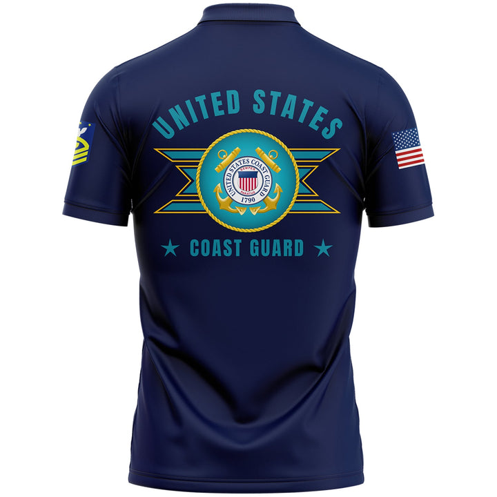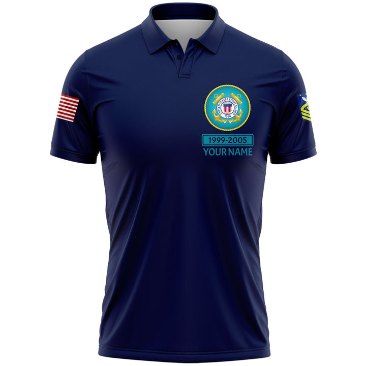 Custom Navy U.S Coast Guard Military Rank Veteran Name Golf Polo Shirt