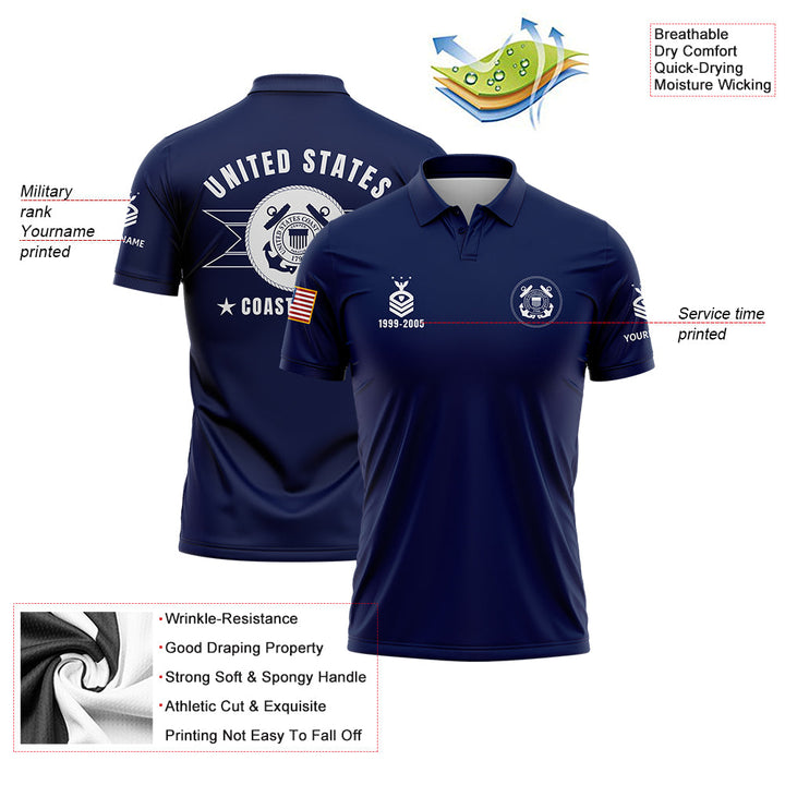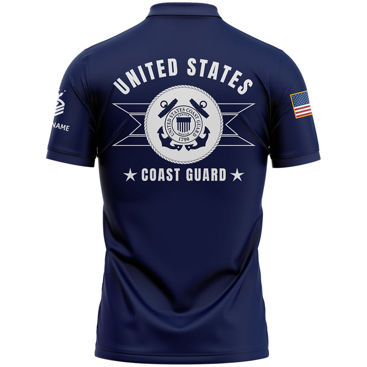Custom Navy U.S Coast Guard Military Rank Veteran Name Golf Polo Shirt