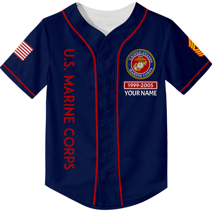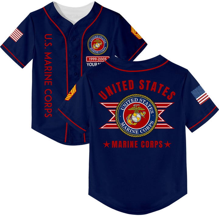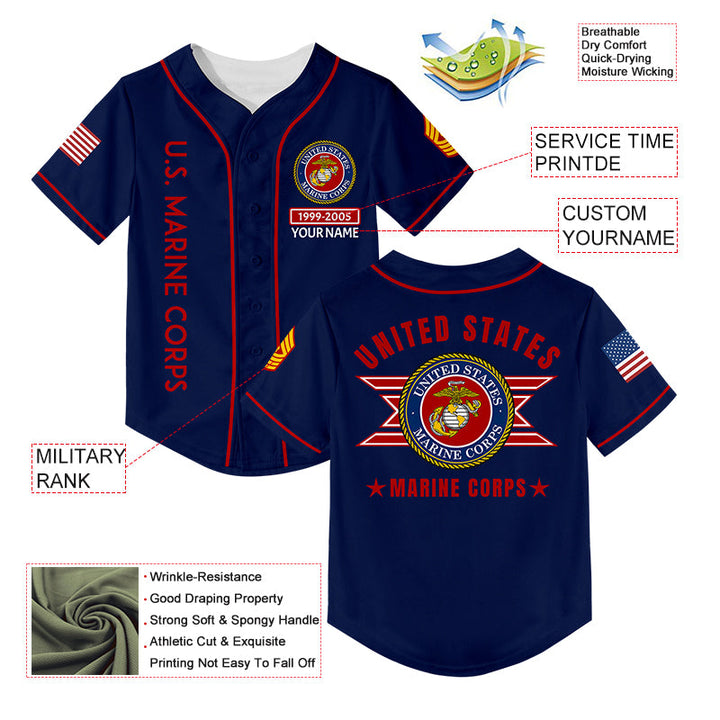 Custom Navy U.S Marine Corps Military Rank Name Baseball Jersey