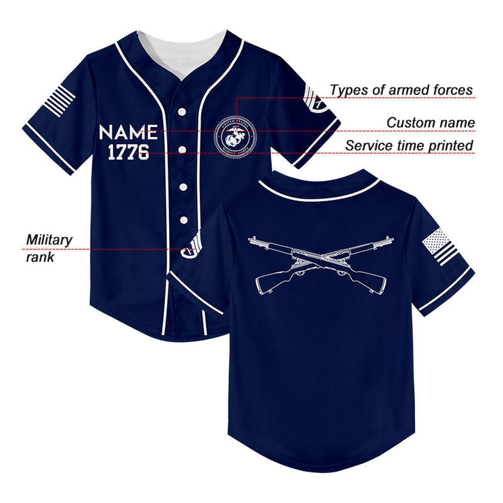 Custom Navy U.S Marine Corps Military Rank Veteran Name Baseball Jersey