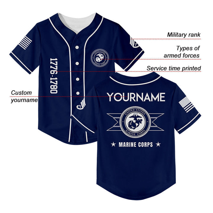 Custom Navy U.S Marine Corps Military Rank Veteran Name Baseball Jersey