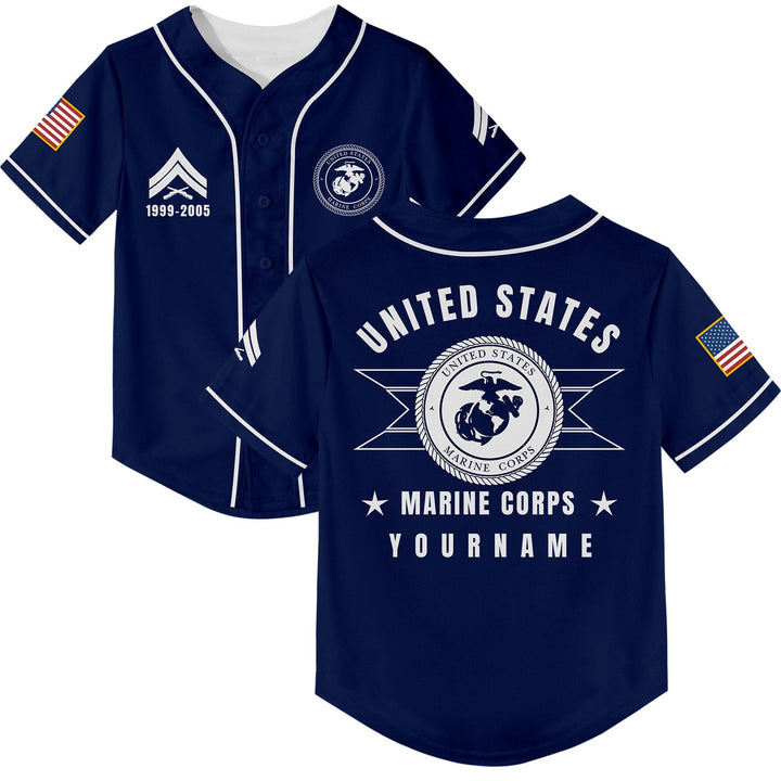 Custom Navy U.S Marine Corps Military Rank Veteran Name Baseball Jersey