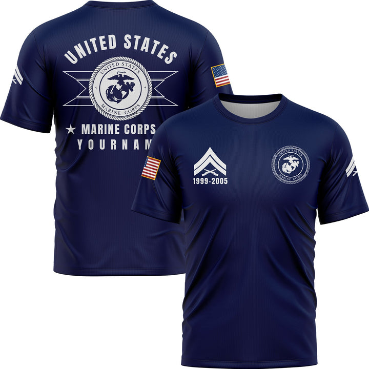 Custom Navy U.S Marine Corps Military Rank Veteran Name T-Shirt
