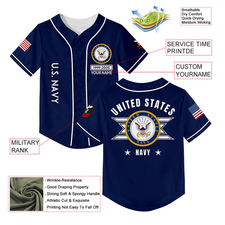 Custom Navy U.S Navy Military Rank Name Baseball Jersey