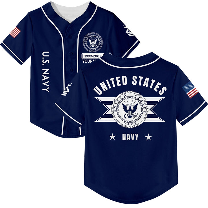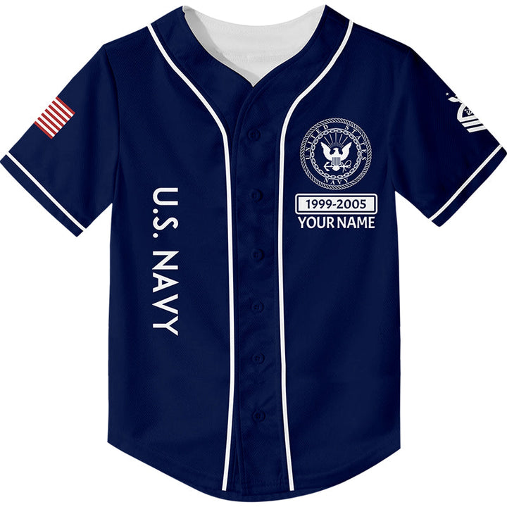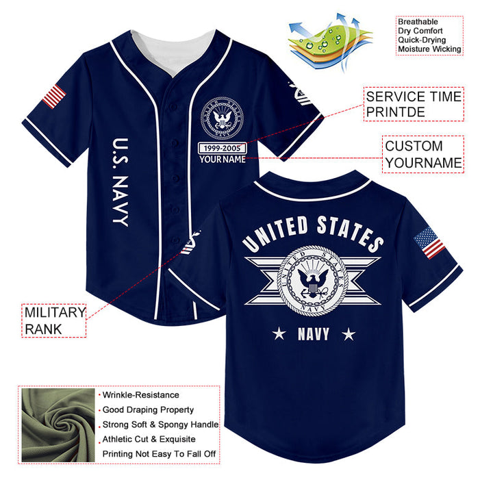 Custom Navy U.S Navy Military Rank Veteran Name Baseball Jersey