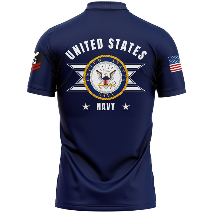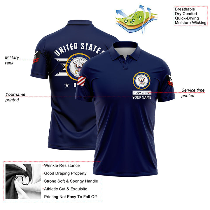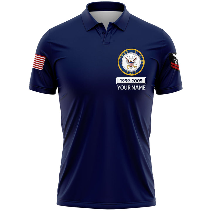 Custom Navy U.S Navy Military Rank Veteran Name Golf Polo Shirt