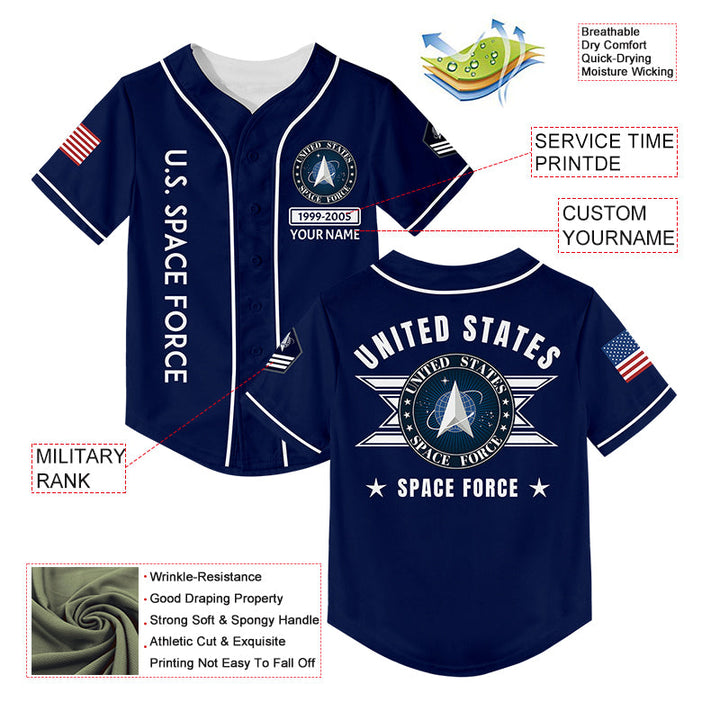 Custom Navy U.S Space Force Military Rank Name Baseball Jersey