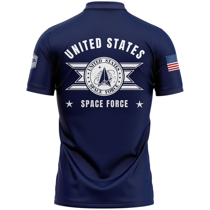 Custom Navy U.S Space Force Military Rank Veteran Name Golf Polo Shirt