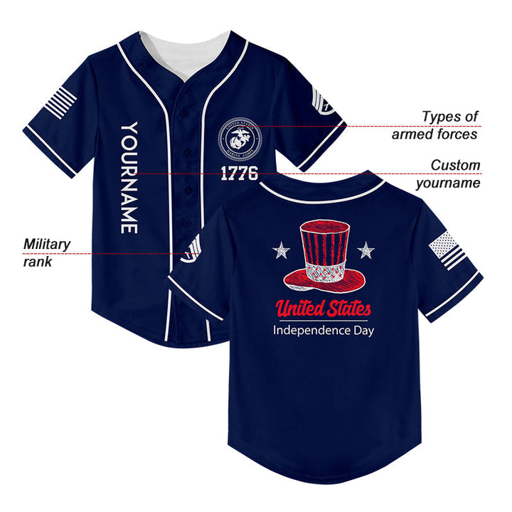 Custom Navy United States Military Rank Name Independence Day Baseball Jersey