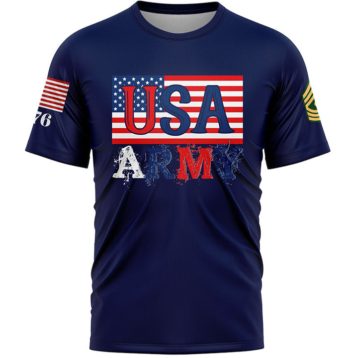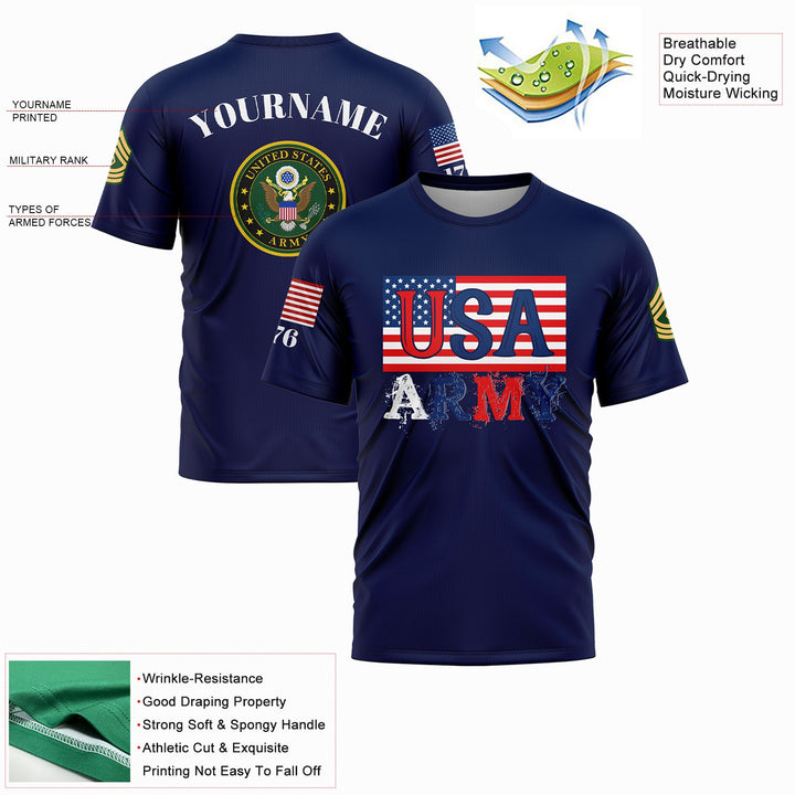 Custom Navy USA 1776 American Flag U.S Army Military Rank Name T-Shirt