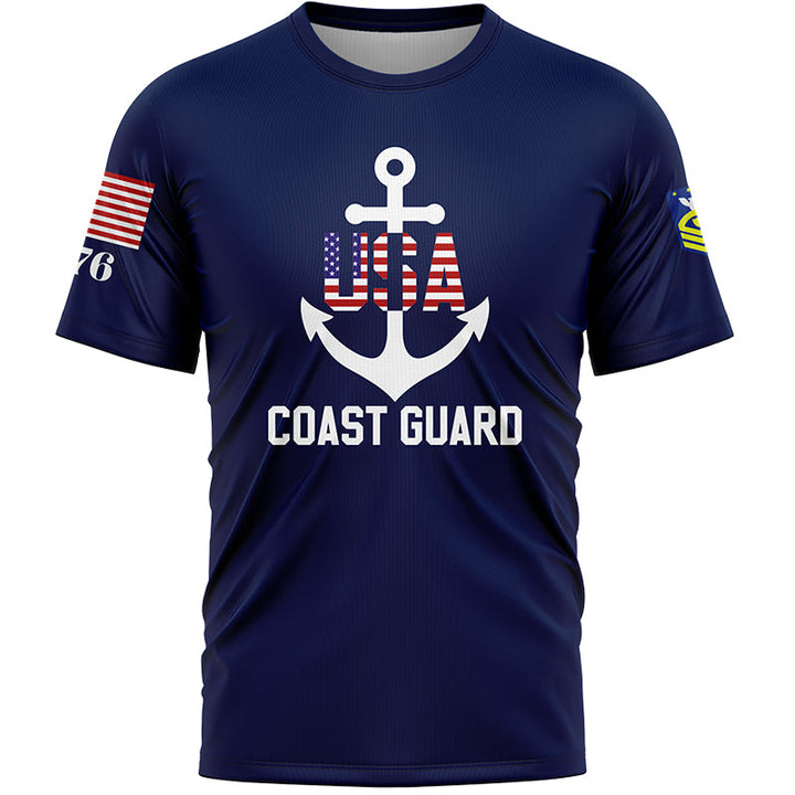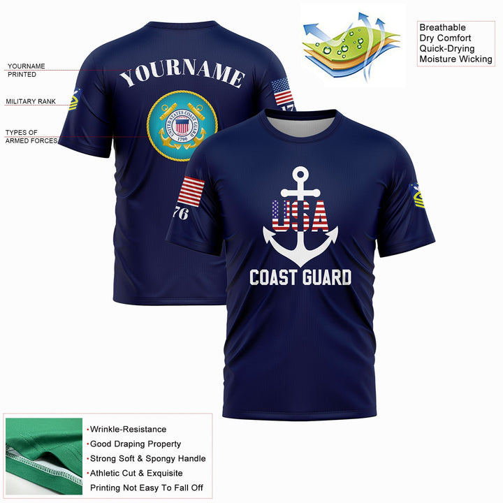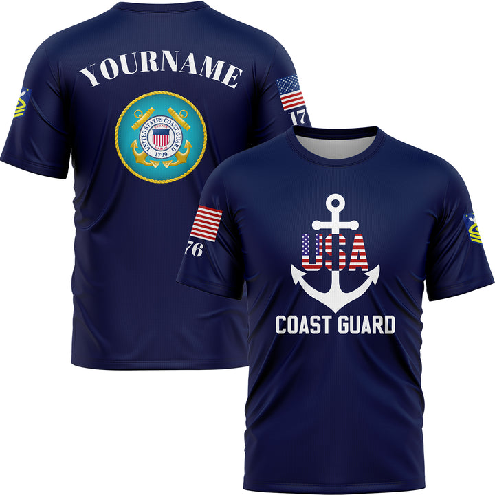 Custom Navy USA 1776 American Flag U.S Coast Guard Military Rank Name T-Shirt