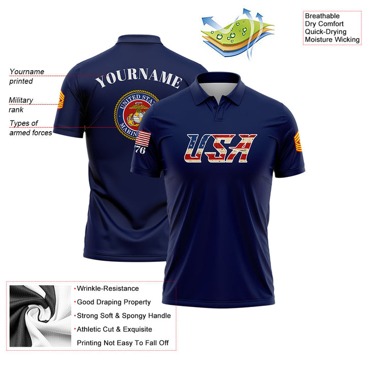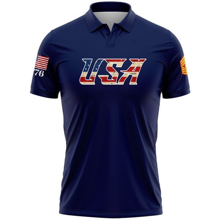 Custom Navy USA 1776 American Flag U.S Marine Corps Military Rank Name Memorial Day Golf Polo Shirt