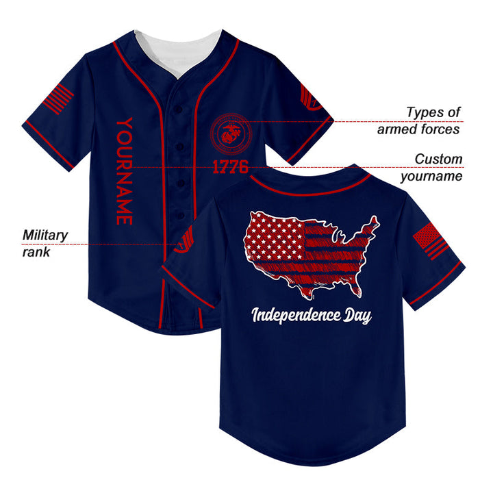 Custom Navy USA Map Military Rank Name Independence Day Baseball Jersey