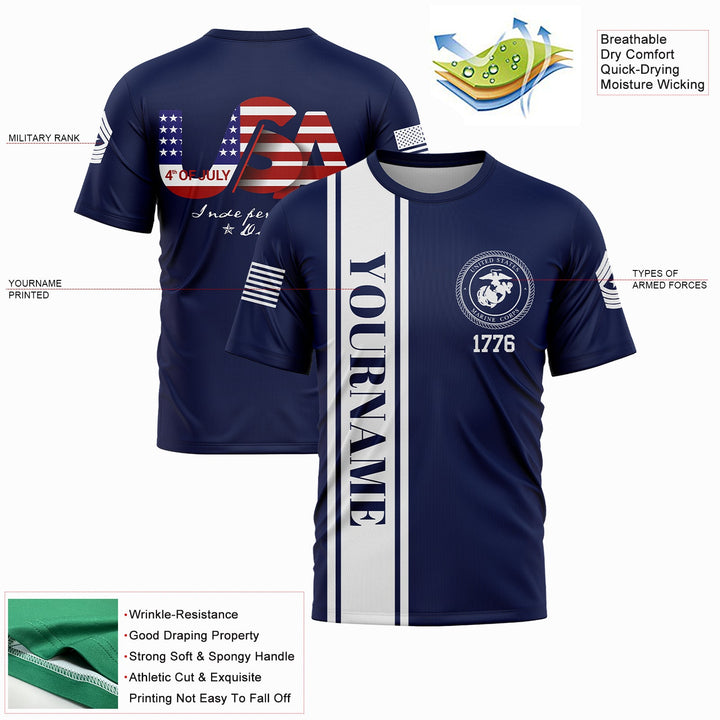 Custom Navy USA Military Rank Name Independence Day T-Shirt