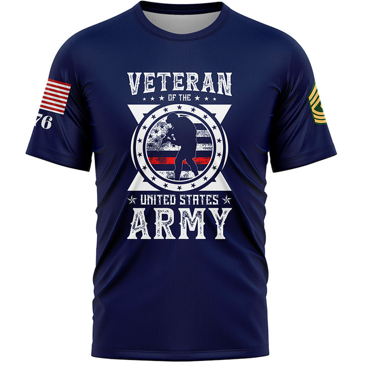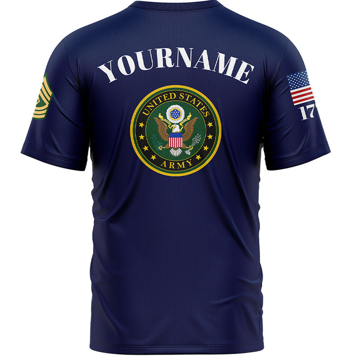 Custom Navy Veteran 1776 American Flag U.S Army Military Rank Name T-Shirt