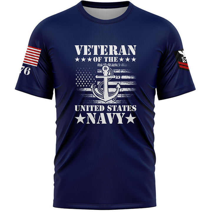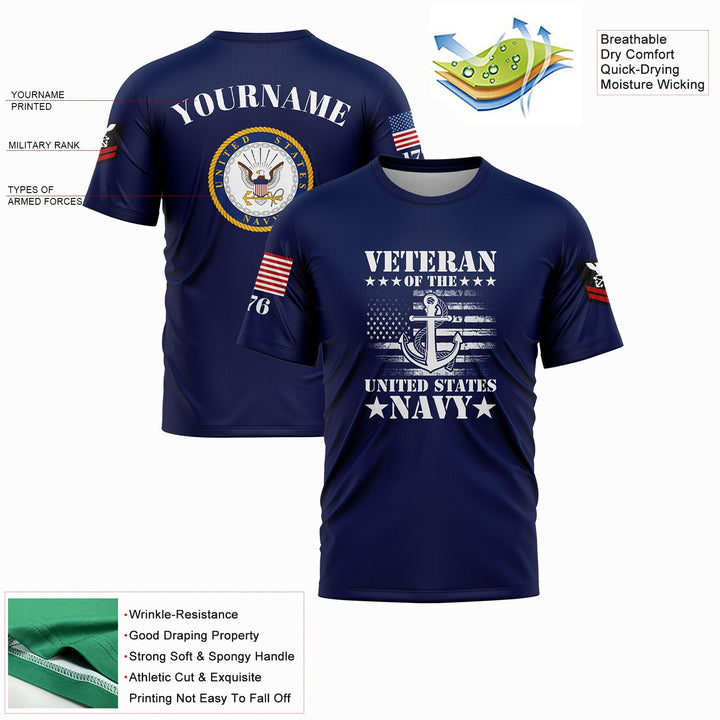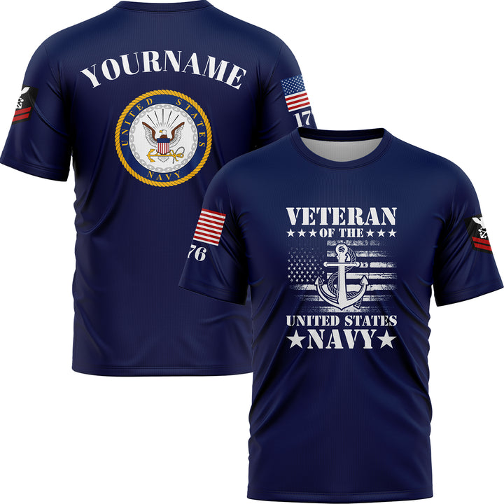 Custom Navy Veteran 1776 American Flag U.S Navy Military Rank Name T-Shirt