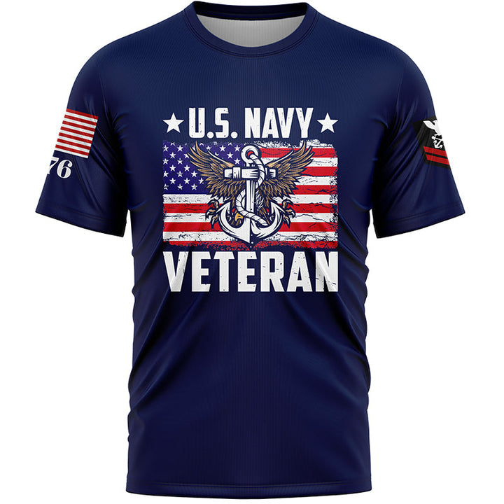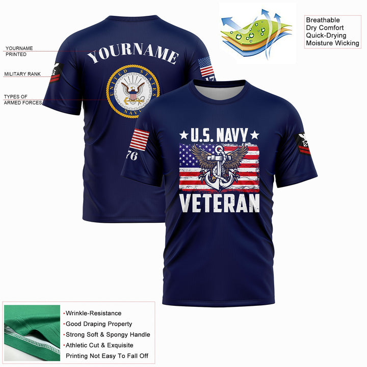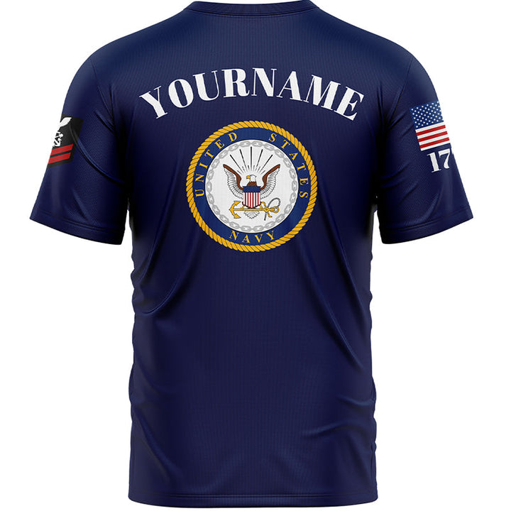 Custom Navy Veteran 1776 American Flag U.S Navy Military Rank Name T-Shirt