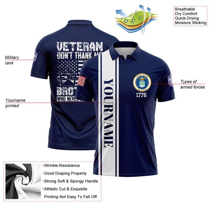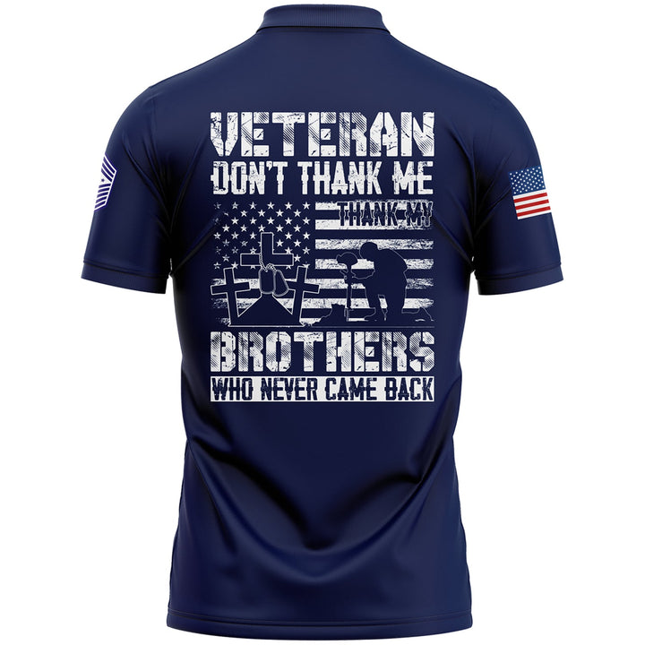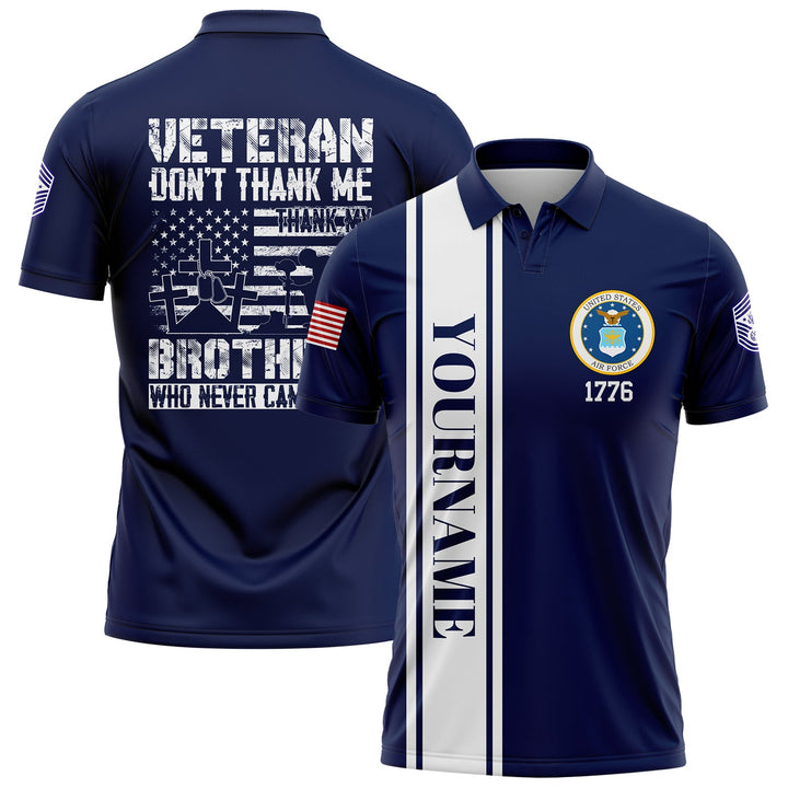 Custom Navy Veteran Don't Thank Me Thank My Brothers Who Never Came Back 1776 Flag U.S Air Force Military Rank Name Veterans Day Golf Polo Shirt | Father's Day Gifts