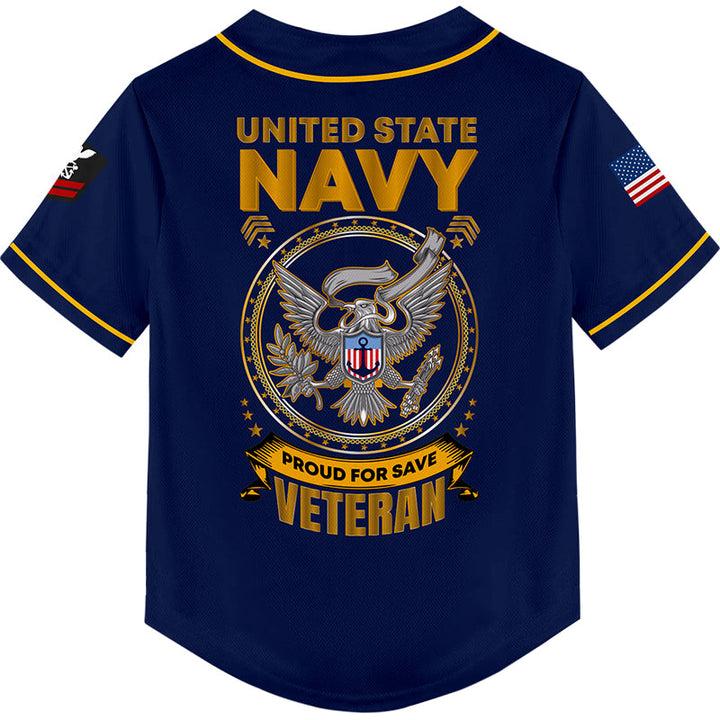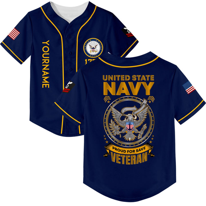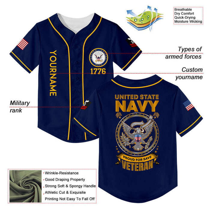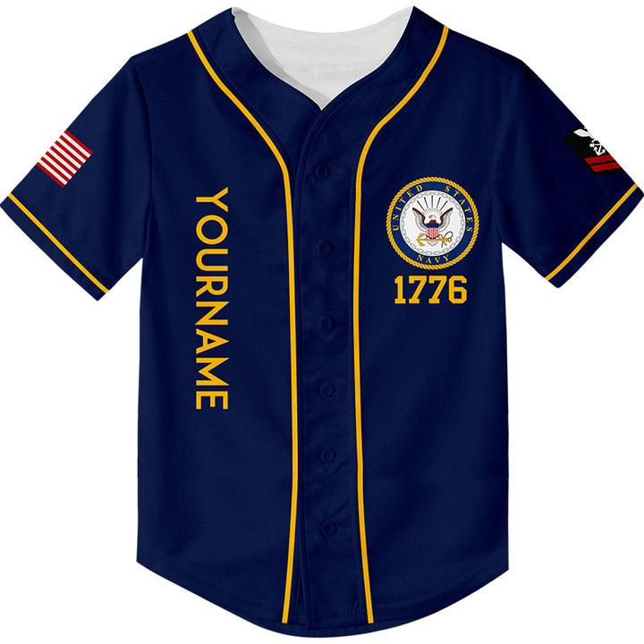 Custom Navy Veterans 1776 American Flag U.S Navy Military Rank Name Baseball Jersey
