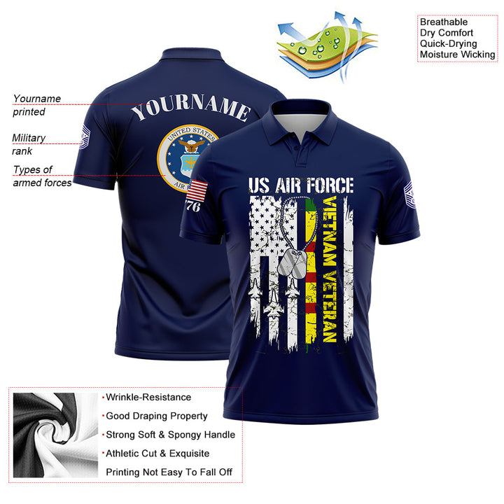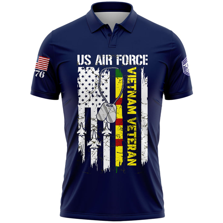 Custom Navy Vietnam Veteran 1776 American Flag U.S Air Force Military Rank Name Veterans Day Golf Polo Shirt