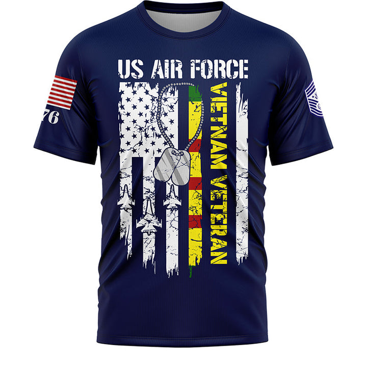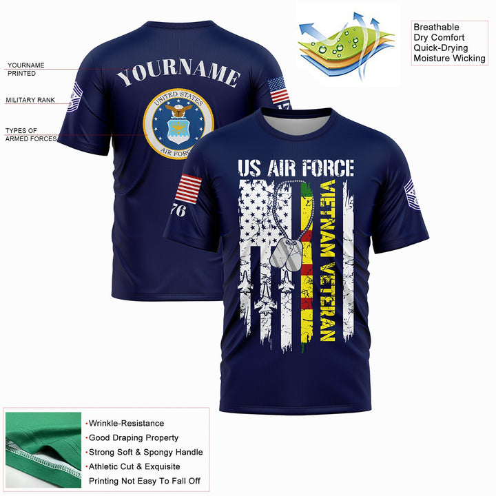Custom Navy Vietnam Veteran 1776 American Flag U.S Air Force Military Rank Name Veterans Day T-Shirt
