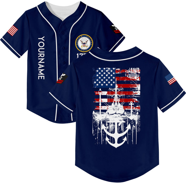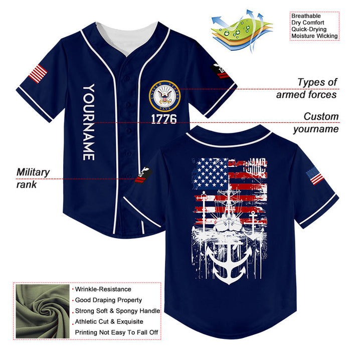 Custom Navy Warship 1776 American Flag U.S Navy Military Rank Name Baseball Jersey