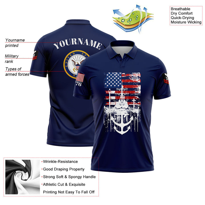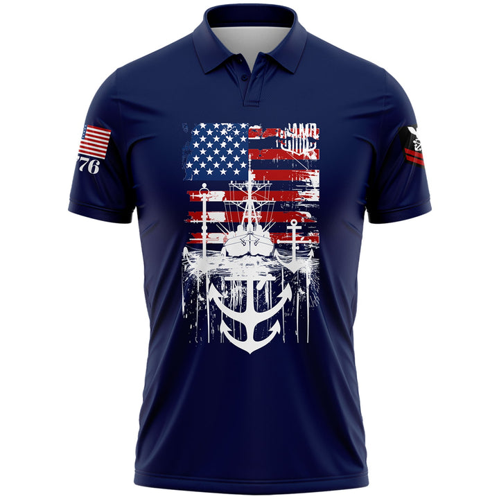 Custom Navy Warship 1776 American Flag U.S Navy Military Rank Name Golf Polo Shirt