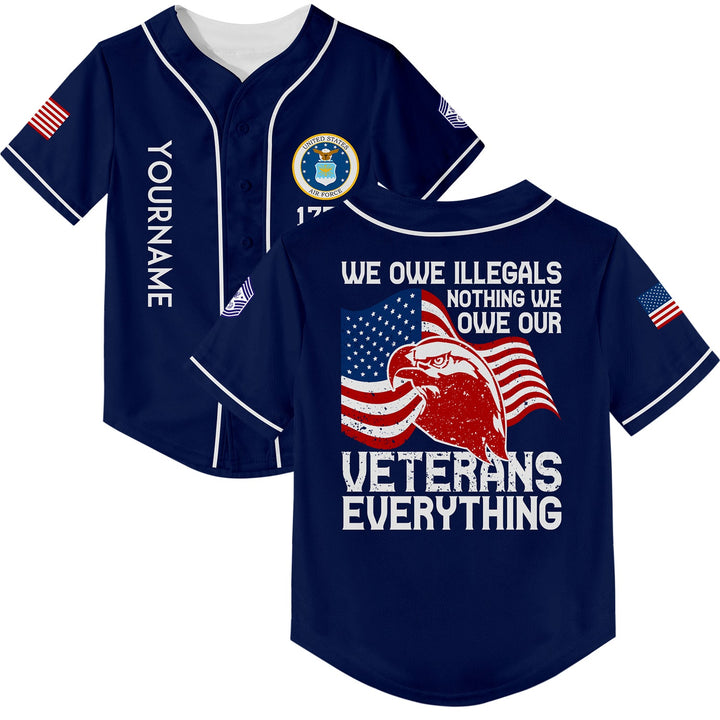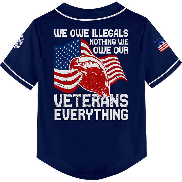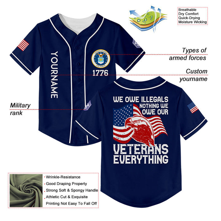 Custom Navy We Own Illegals Nothing We Our Veterans Everything 1776 Eagle Flag Military Rank Name Veterans Day Baseball Jersey